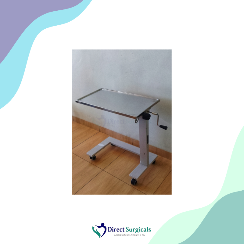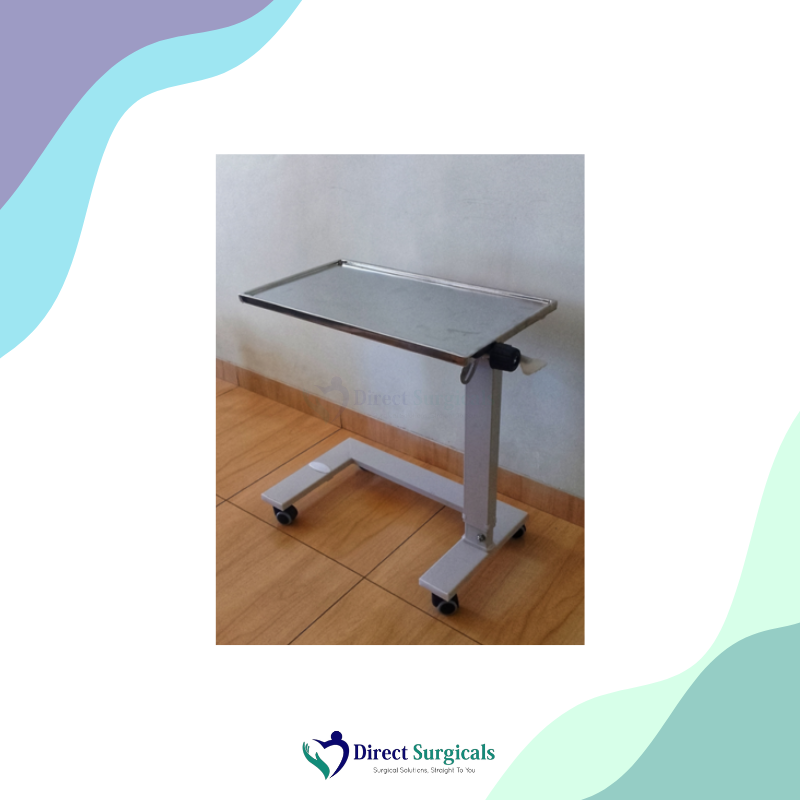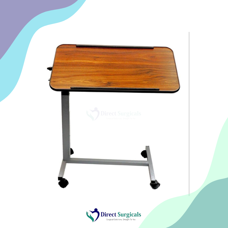 - → Easy Maneuverability: The wheels allow the table to be easily rolled into position over the bed or moved away when not needed, reducing caregiver strain.